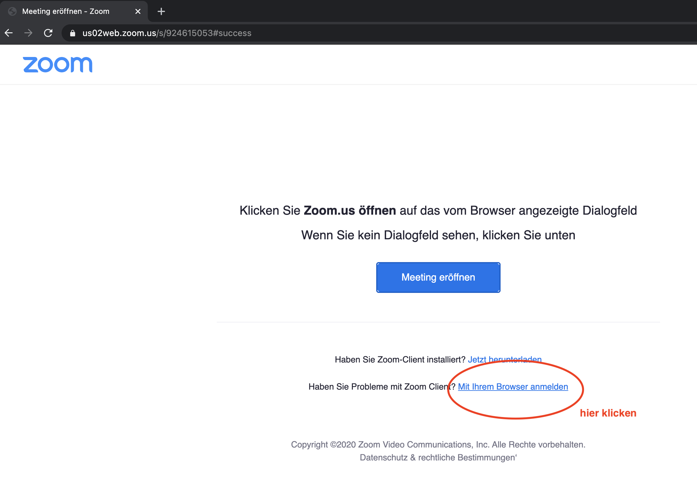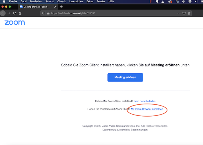 Für diese Art der Teilnahme müssen Sie kein Programm installieren, notwendig ist nur ein aktueller Browser (Chrome, Firefox, Microsoft Edge oder Safari)