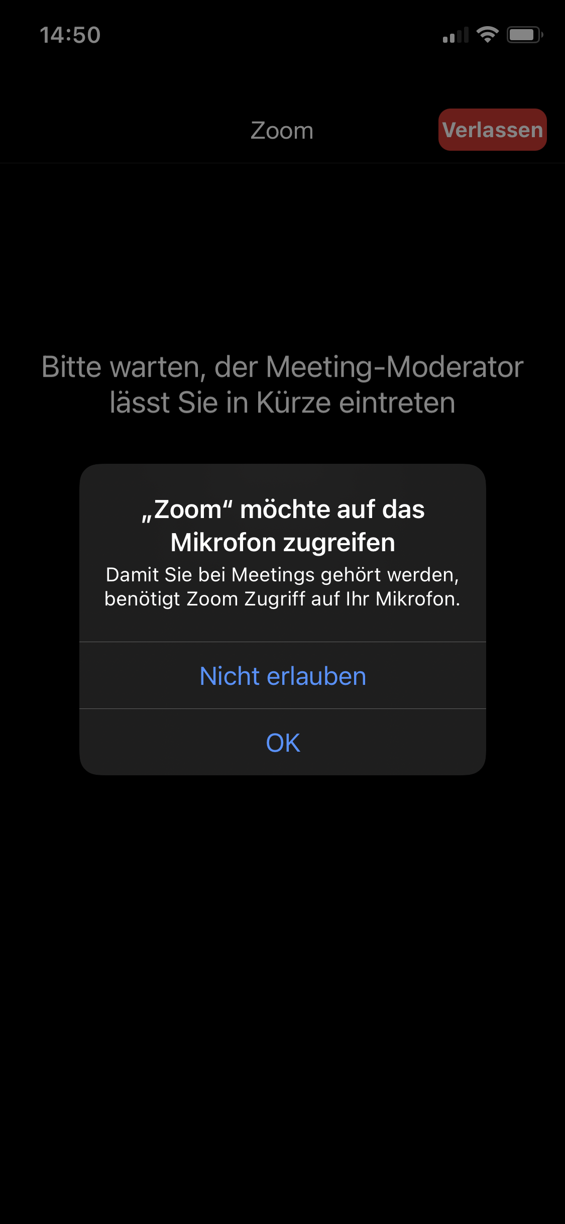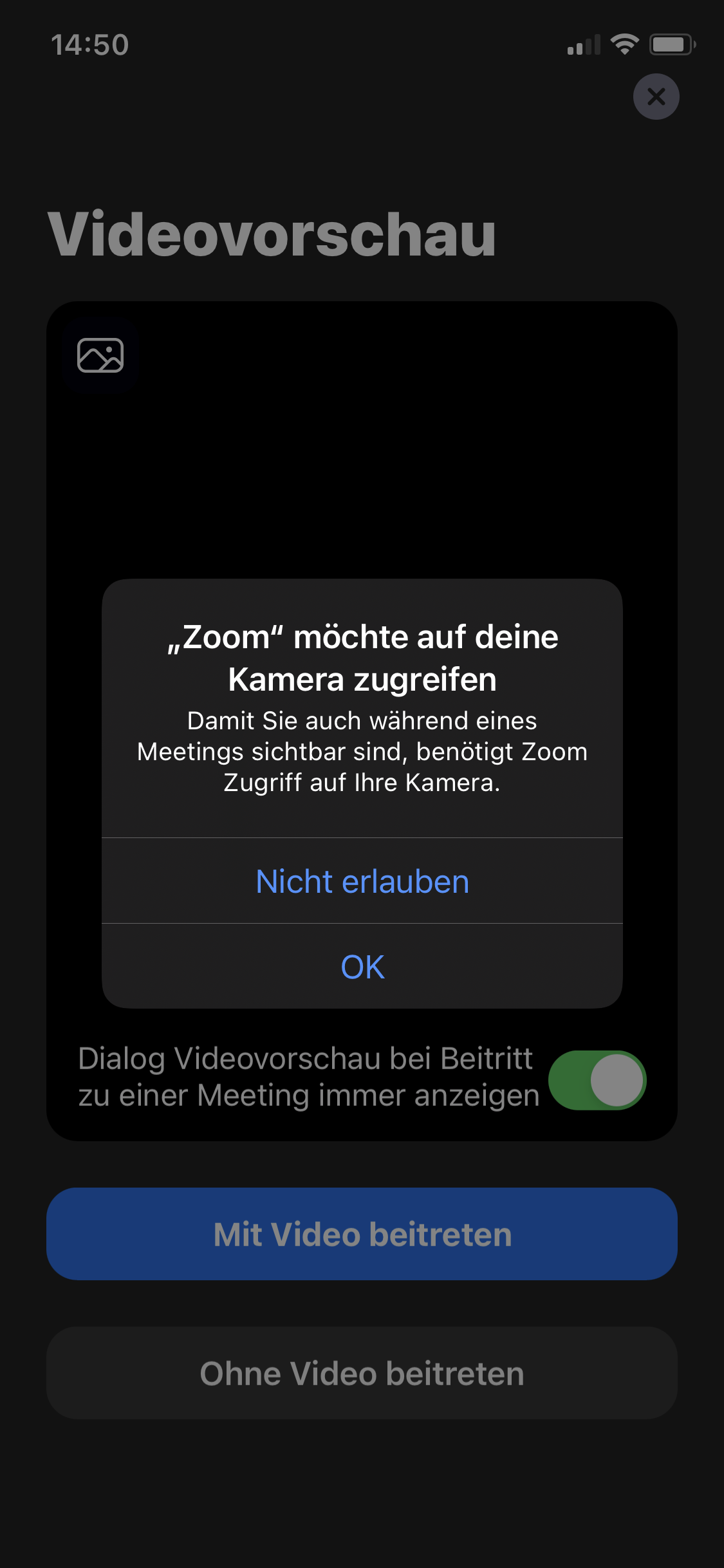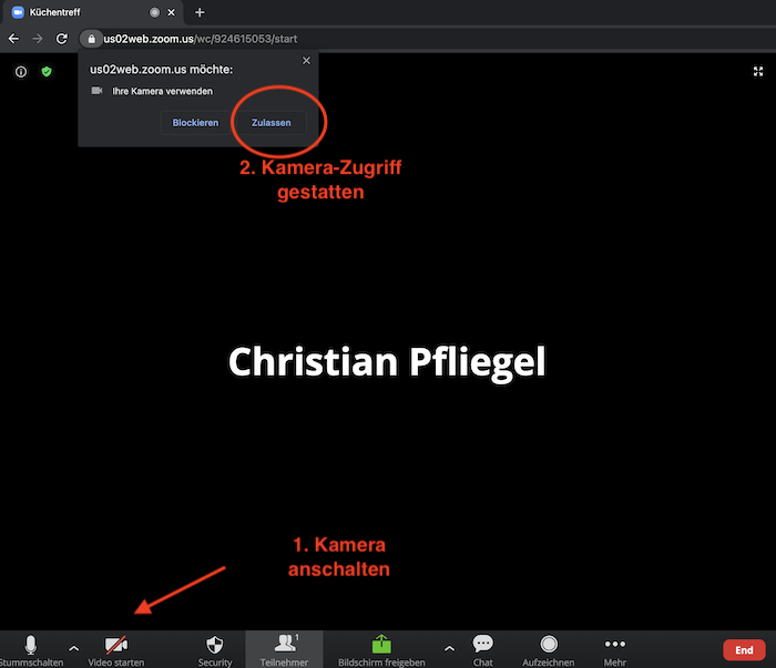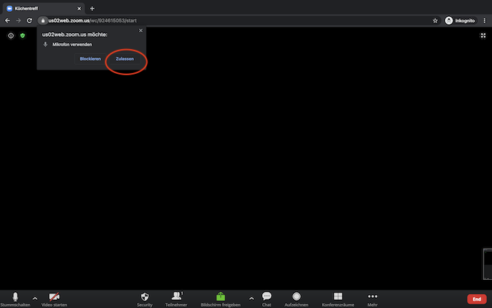 4. Zoom benötigt nun noch den Zugriff auf Mikrofon und Kamera. Bitte beides gestatten: